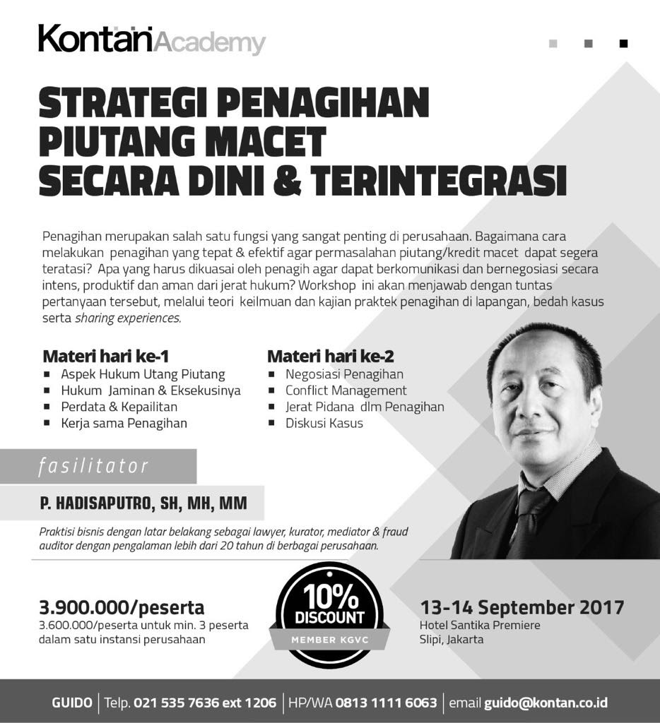 Kami aktif memberikan In-House Training, Public Training, Workshop & Seminar baik di Jakarta maupun luar Jakarta, bekerjasama dengan Kontan Academy & Radio PAS FM dengan tema antara lain :